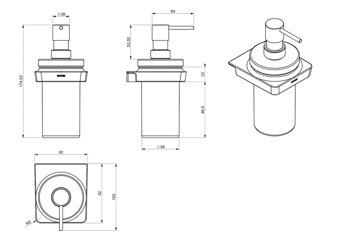 ZEN Seifenspender 250ml, Milchglas, Chrom