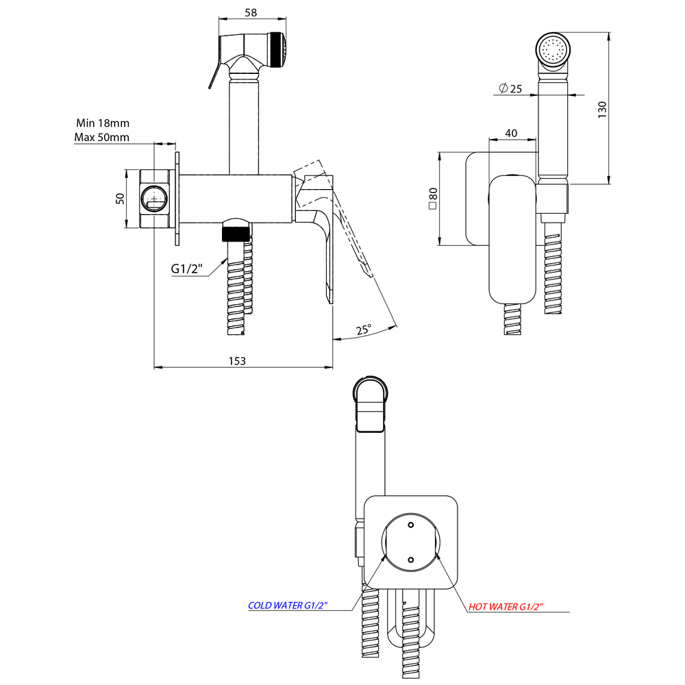 SPY Unterputz-Armatur mit WC-Handbrause, Gold matt