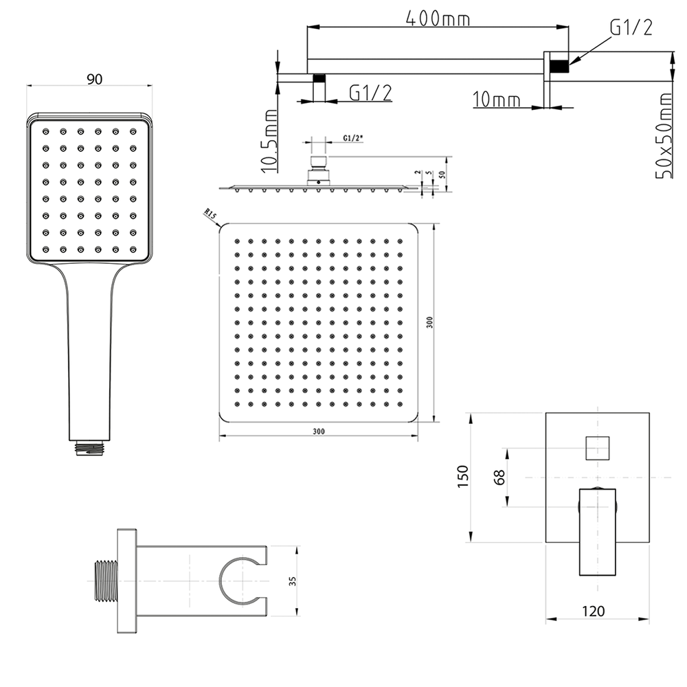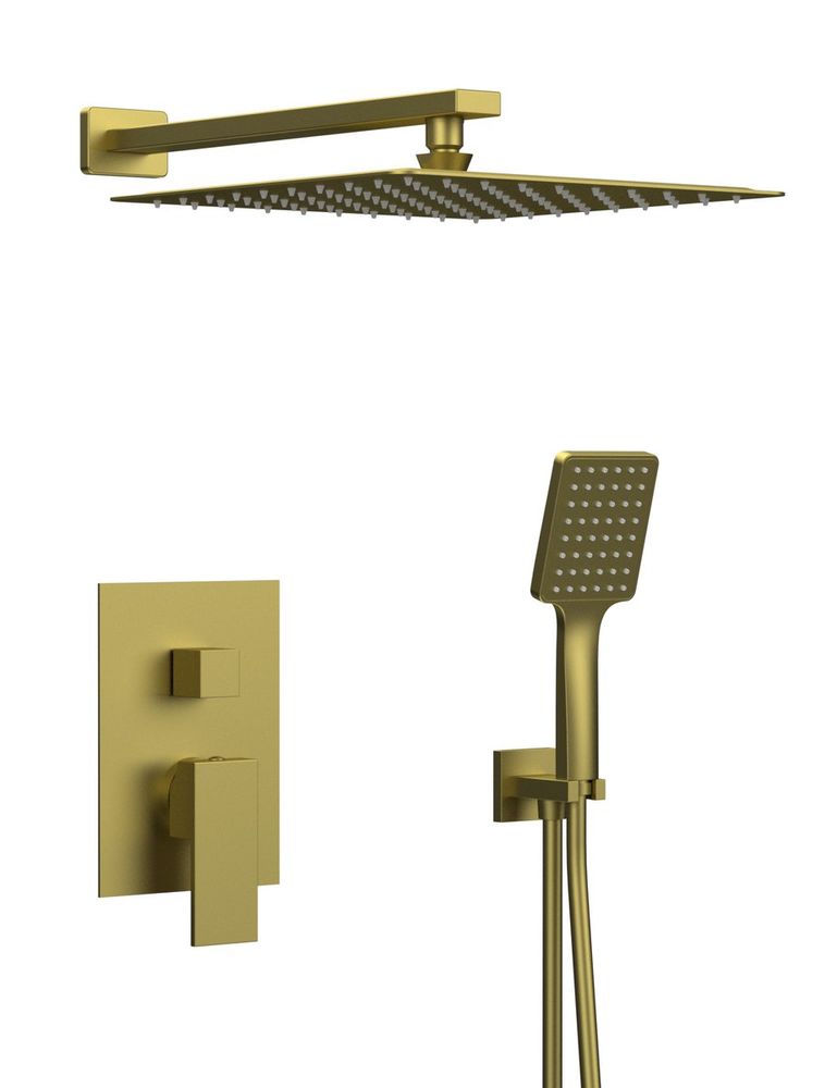 CUBEMIX Unterputz-Brausegarnitur mit Armatur, 2 Abgänge, Gold matt