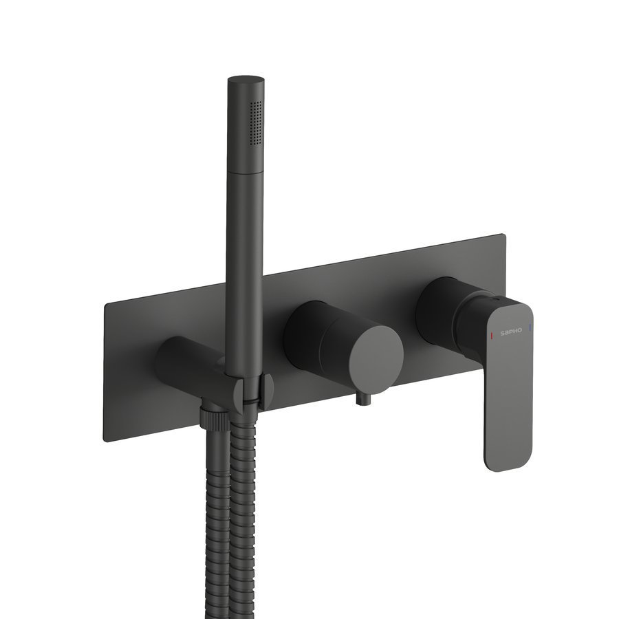 SPY Unterputz-Duscharmatur/Wannenarmatur mit Handbrause, 3 Wege, schwarz matt