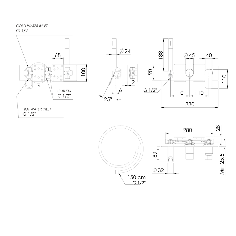 Die Befüllung der Wanne mit Frischwasser erfolgt meist über einen Wasserhahn, der entweder am Wannenrand oder in der Wand angebracht ist. In diesem Falle benötigen Sie zusätzlich zur Ab- und Überlaufgarnitur einen Wasserhahn für den Wassereinlauf in die Wanne. Als alternative Variante gibt es die etwas elegantere Lösung des Wassereinlaufs per Überlauf. Hierzu wird eine sog. Ein-, Ab- und Überlauf-Garnitur benötigt.