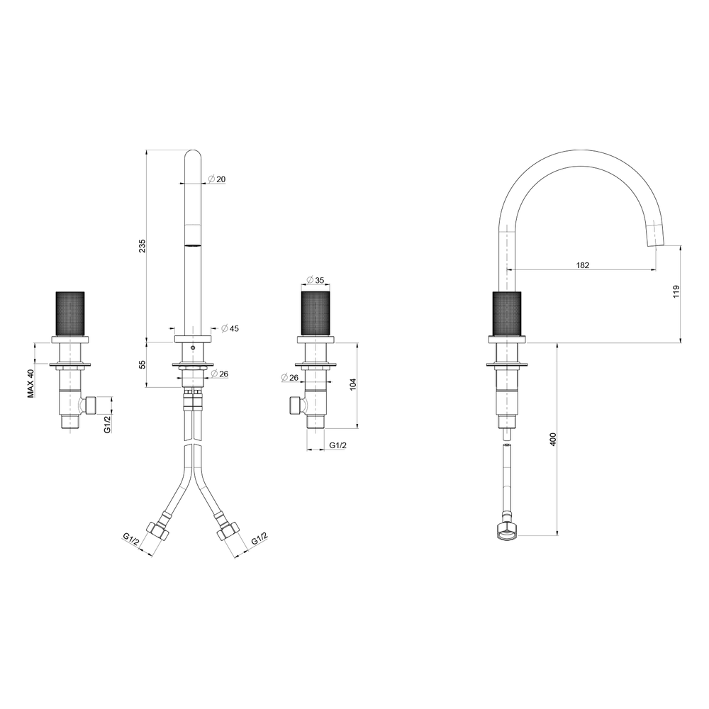 ULTRATAP 3-Loch Waschtischarmatur, Schwarz matt/Gold matt