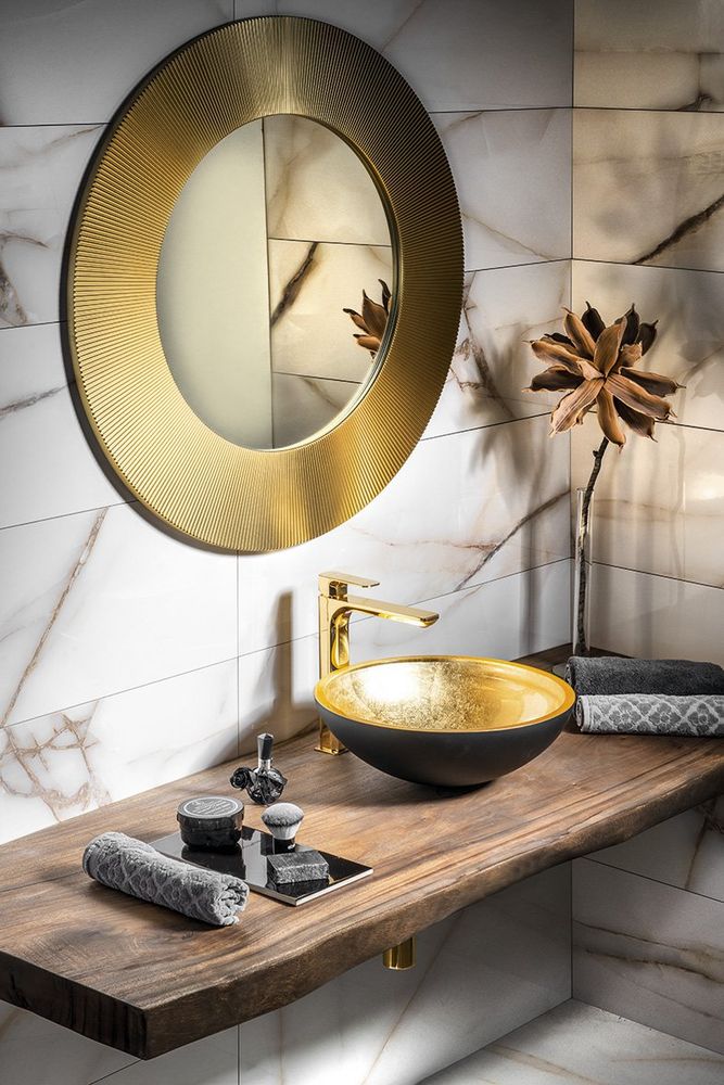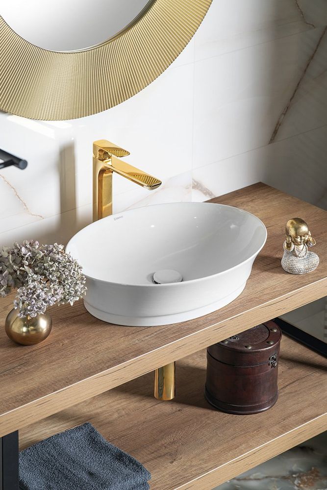 SPY Waschtischarmatur, hoch, verlängerter Gussauslauf, gold