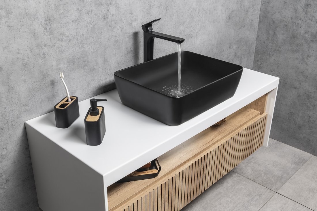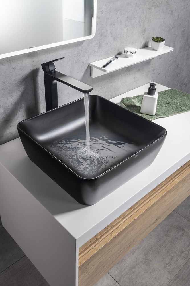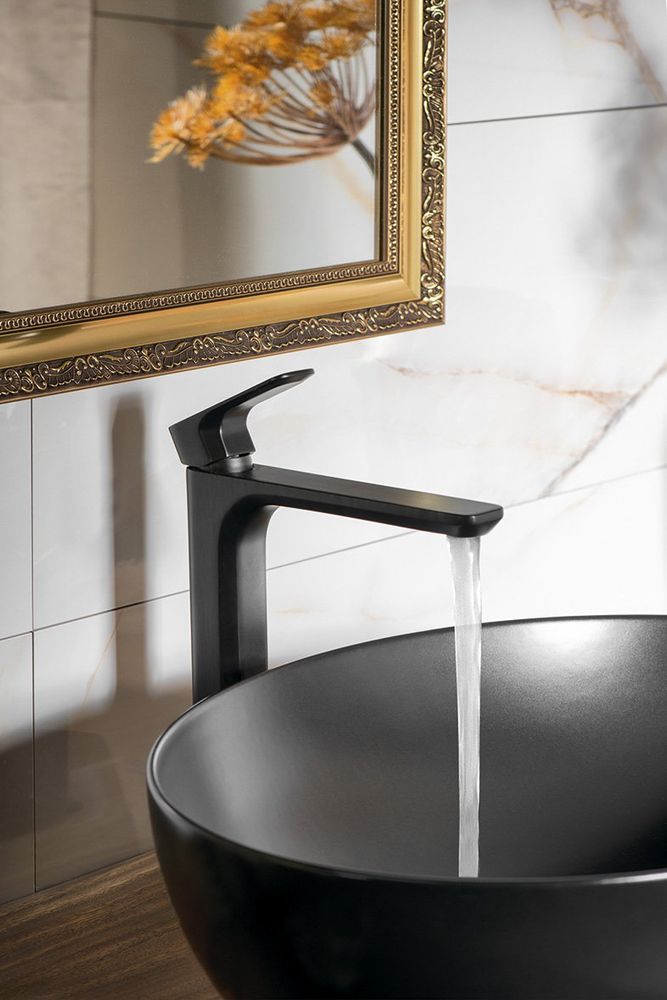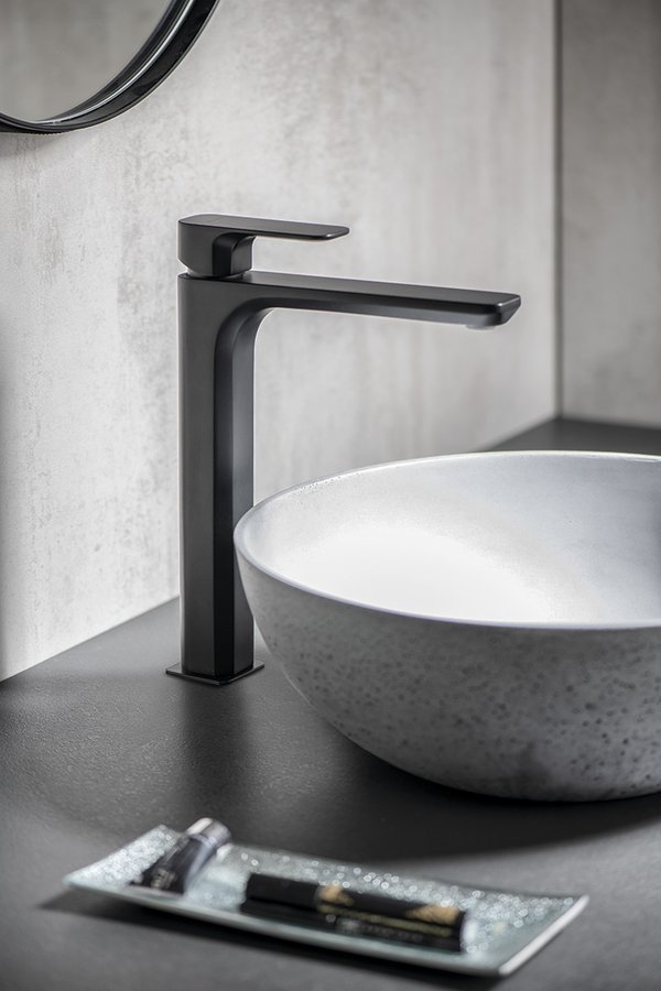 SPY Waschtischarmatur, hoch, verlängerter Gussauslauf, schwarz matt