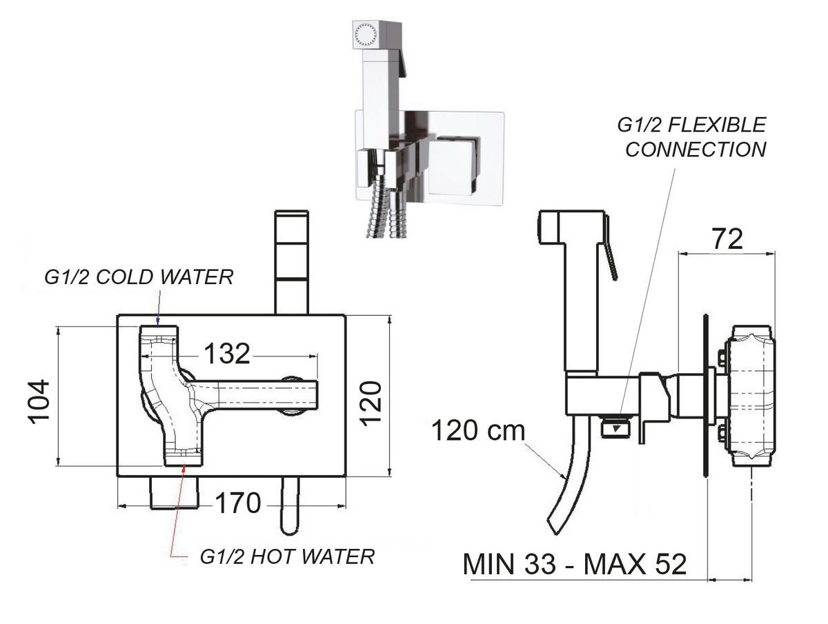 SPECTRE Unterputz-Armatur mit WC-Handbrause, eckig, Chrom