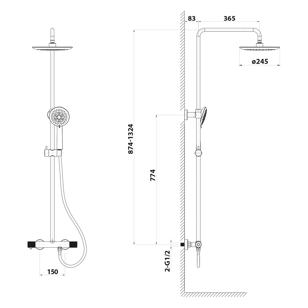 SOLARIS Duschsäule mit Thermostat-Armatur, Chrom/schwarz matt