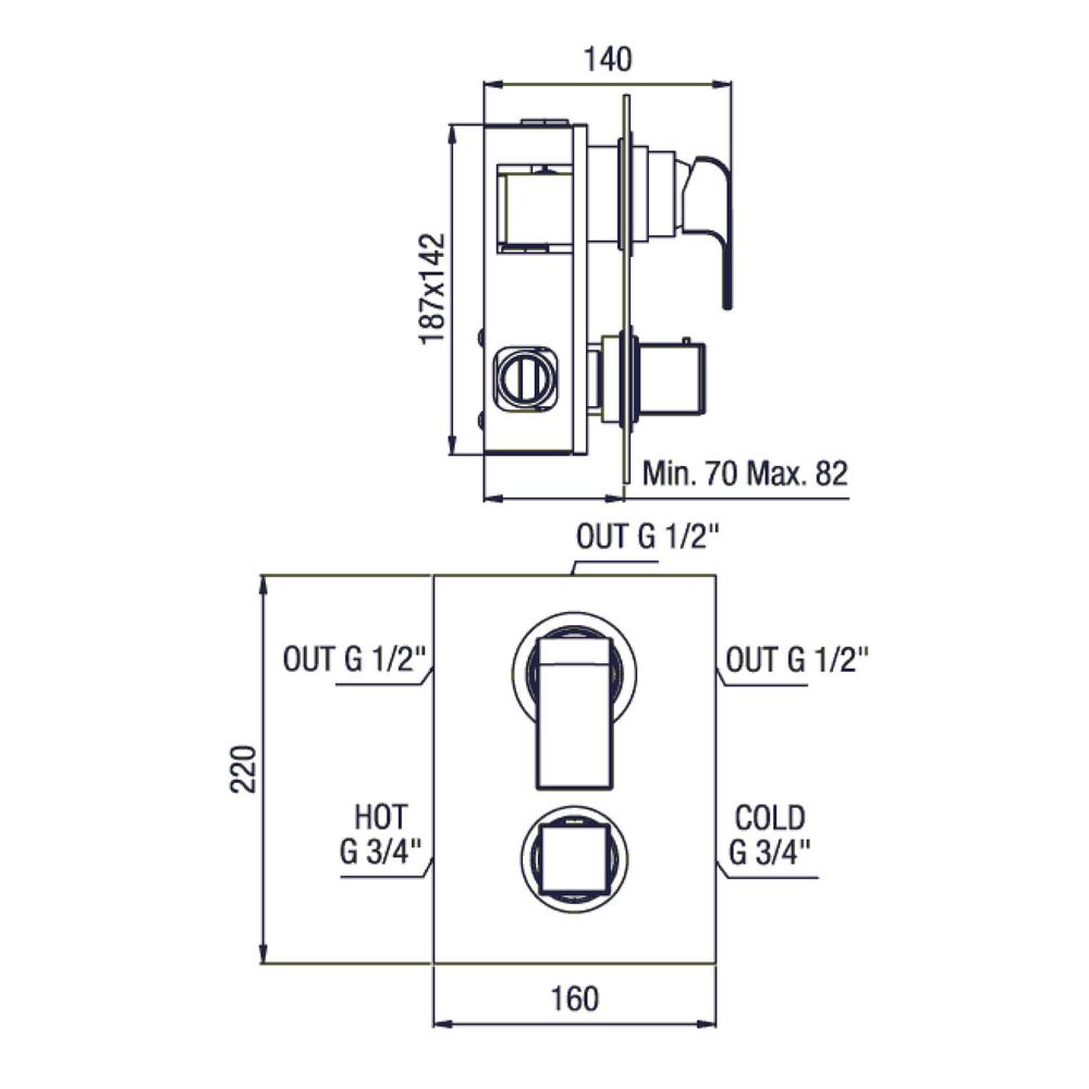 DIMY Thermostat-Dusch-Armatur , 3 Wege, Chrom