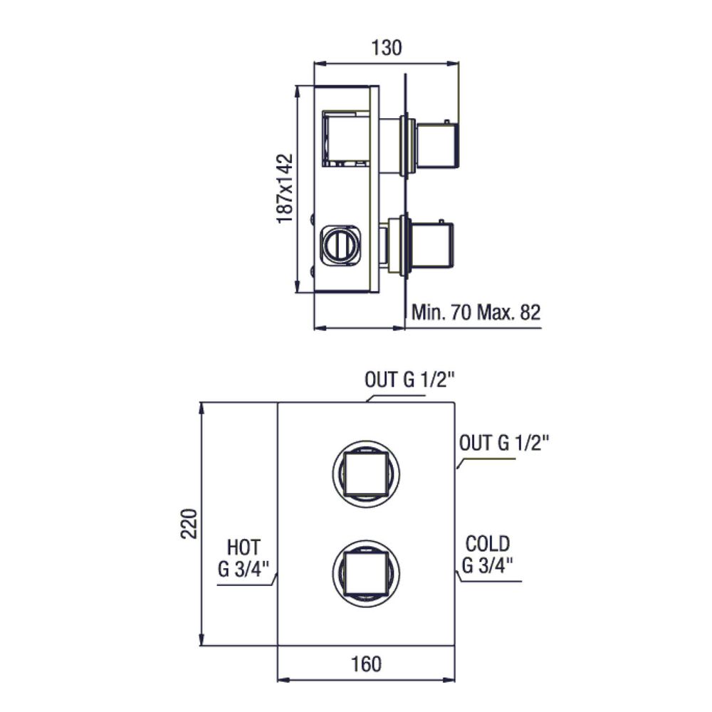DIMY Thermostat-Duscharmatur , 2 Wege, Chrom