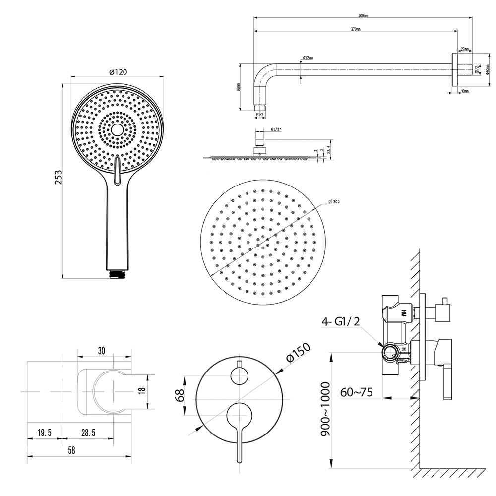 | Brausefunktionen | Regen, Massage, Regen/Massage |