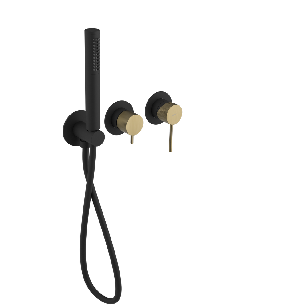 ULTRASAN Unterputz-Duscharmatur/Wannenarmatur mit Handbrause, 2 Wege, Schwarz matt/Gold matt