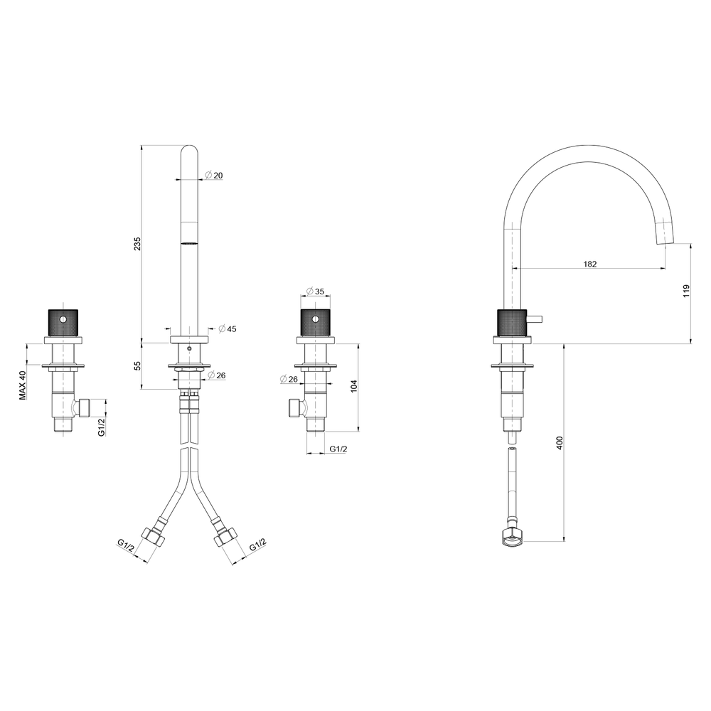 ULTRASAN 3-Loch Waschtischarmatur, Schwarz matt/chrom