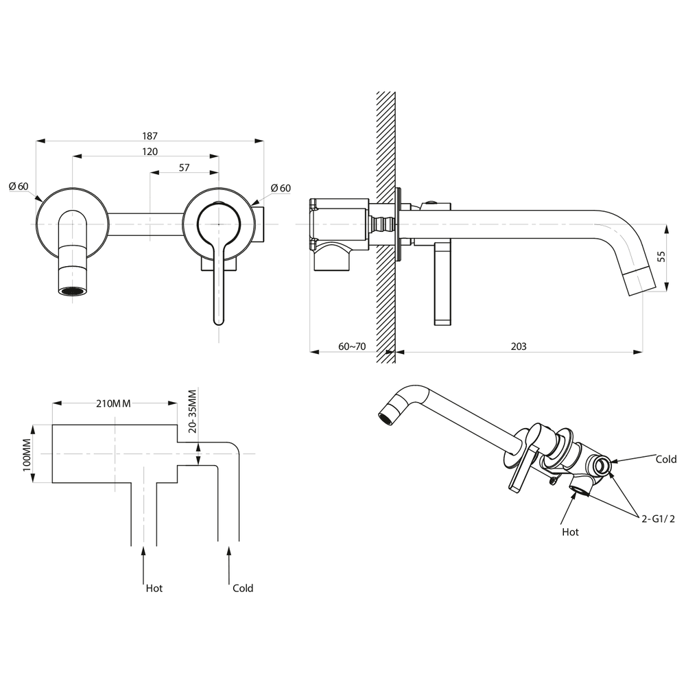 ICONIC Unterputz-Waschtischarmatur 2-Loch, Schwarz matt