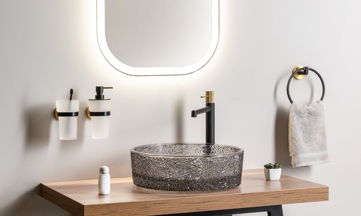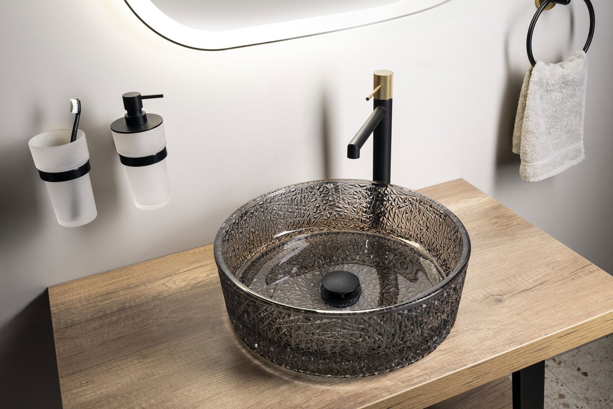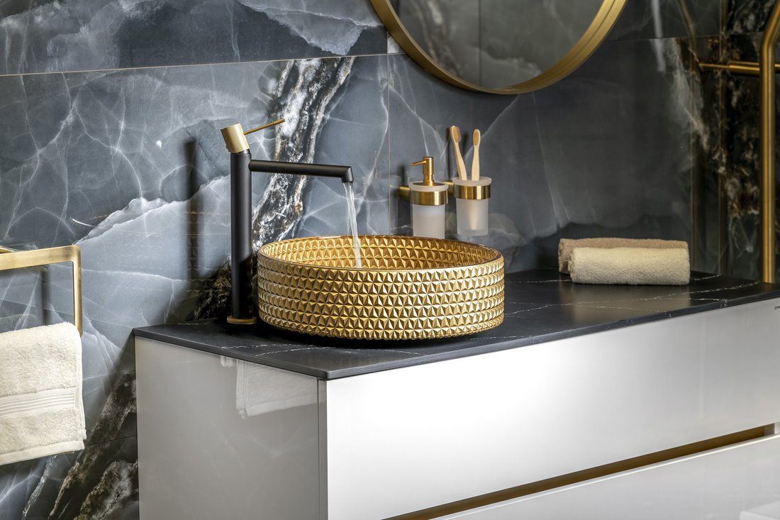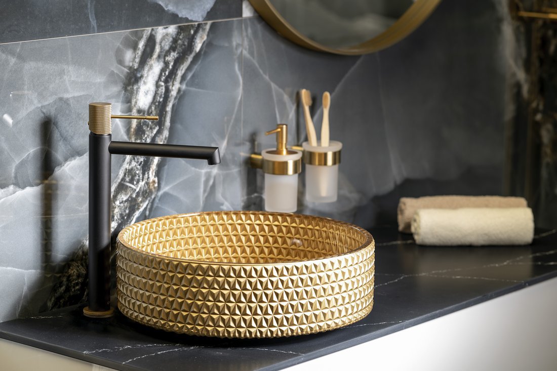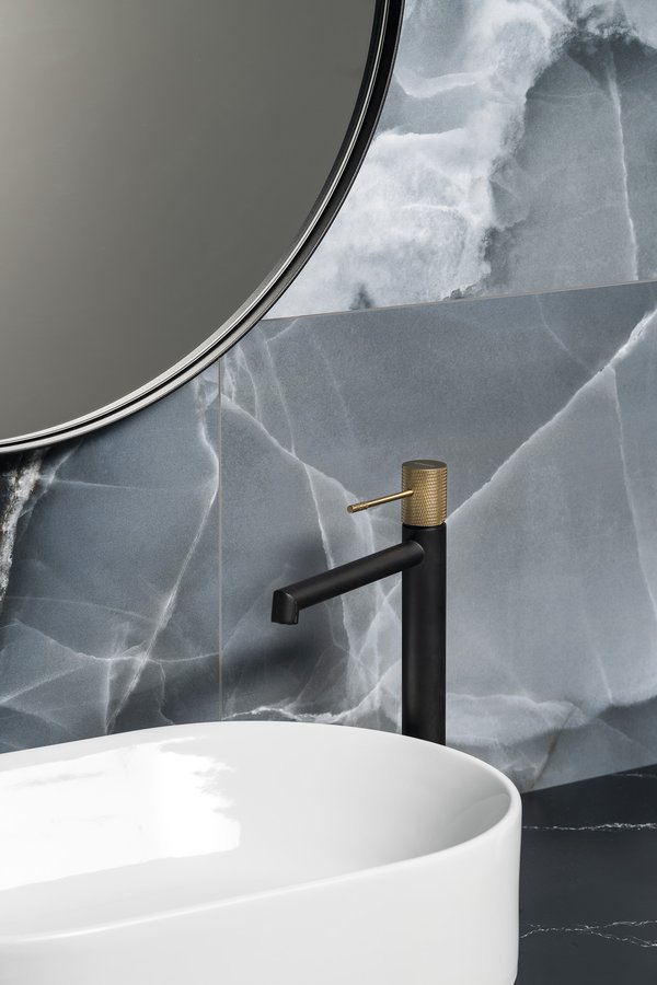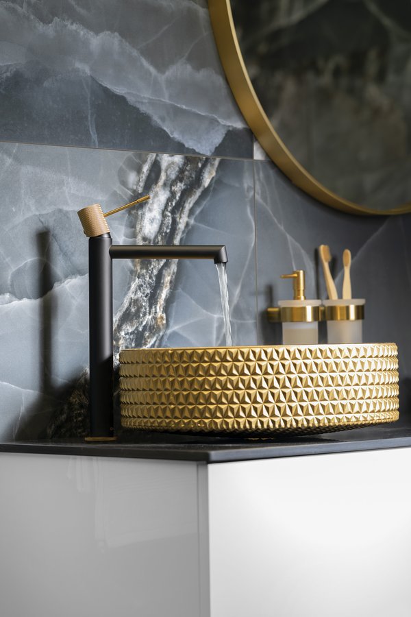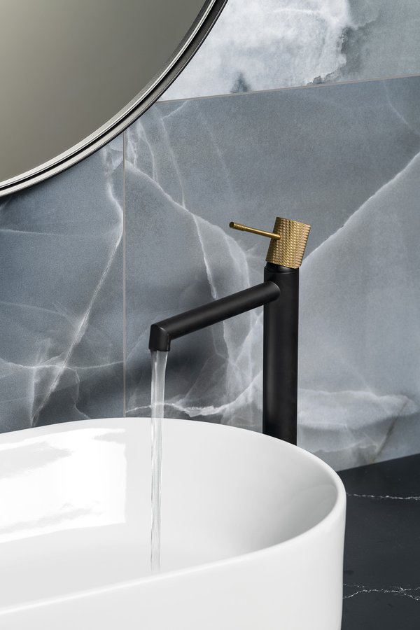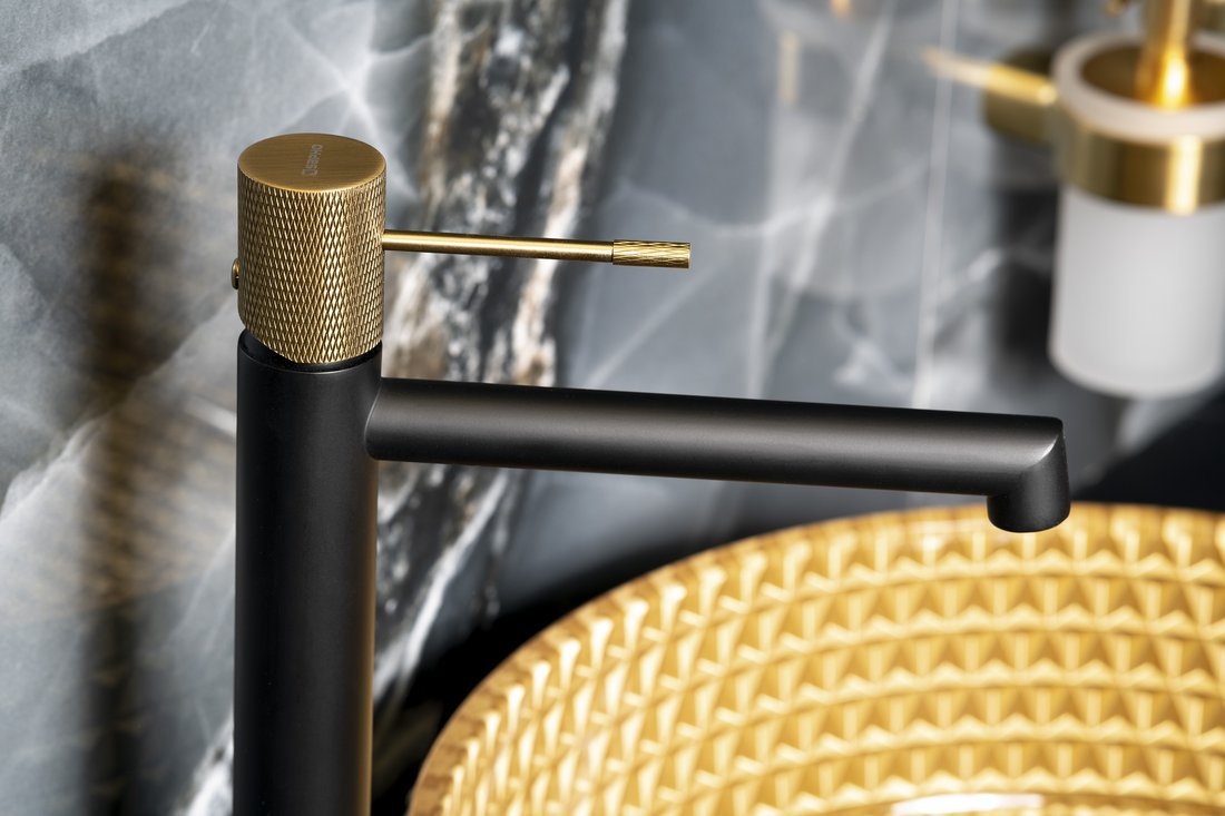 SOLARIS Waschtischarmatur, hoch, Schwarz/Gold matt