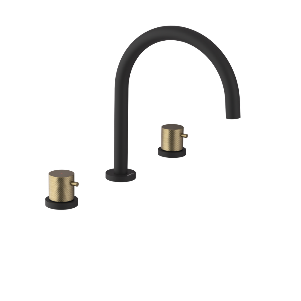 ULTRASAN 3-Loch Waschtischarmatur, Schwarz matt/Gold matt