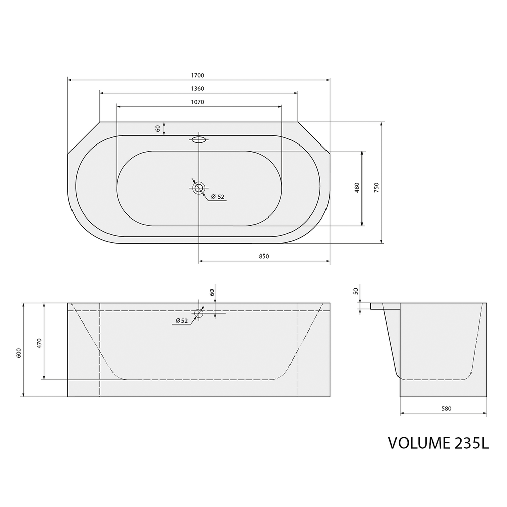 VIVA A MONOLITH Eckwanne 170x75x60cm, weiß