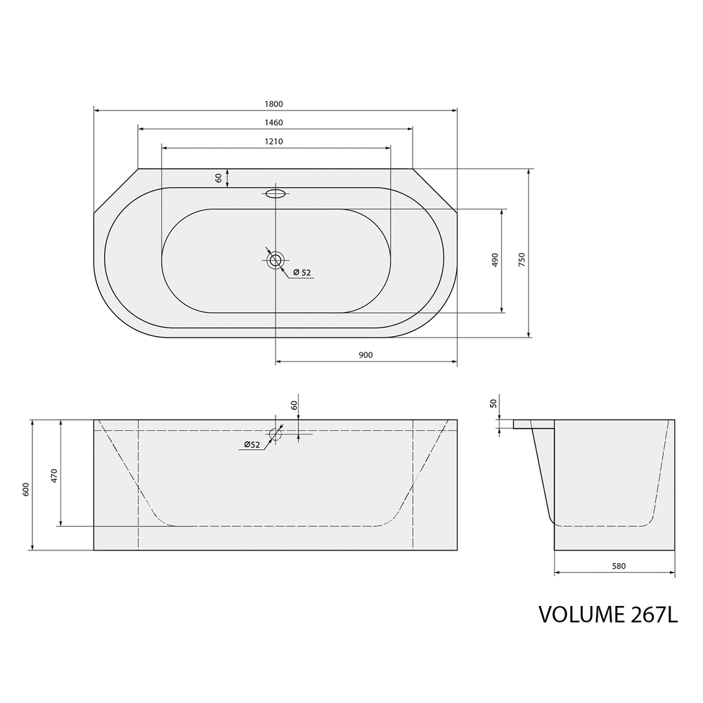 VIVA A MONOLITH Eckwanne 180x75x60cm, weiß