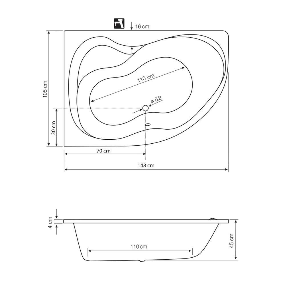 CIDLINA Badewanne 150x105x45cm, links