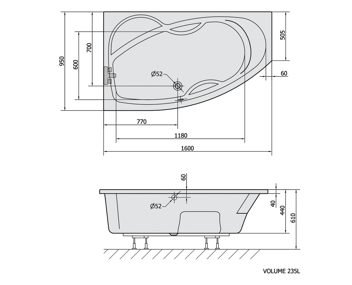 MAMBA L asymmetrische Badewanne 160x95x45cm, links, weiß