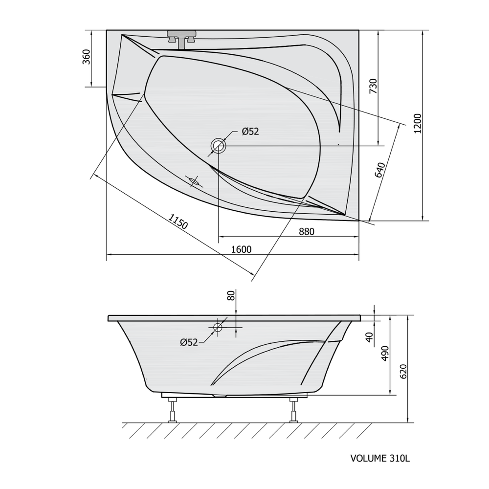 Badewanne Tanya 160 x 120 x 49 rechts