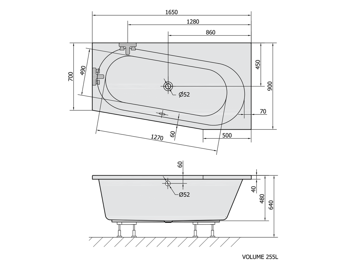ASTRA WR asymmetrische Badewanne 165x90x48cm, rechts