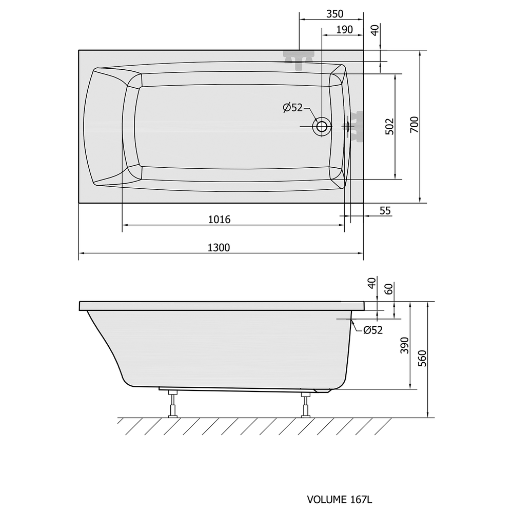 LILY Rechteckwanne 130x70x39cm inkl. Füße