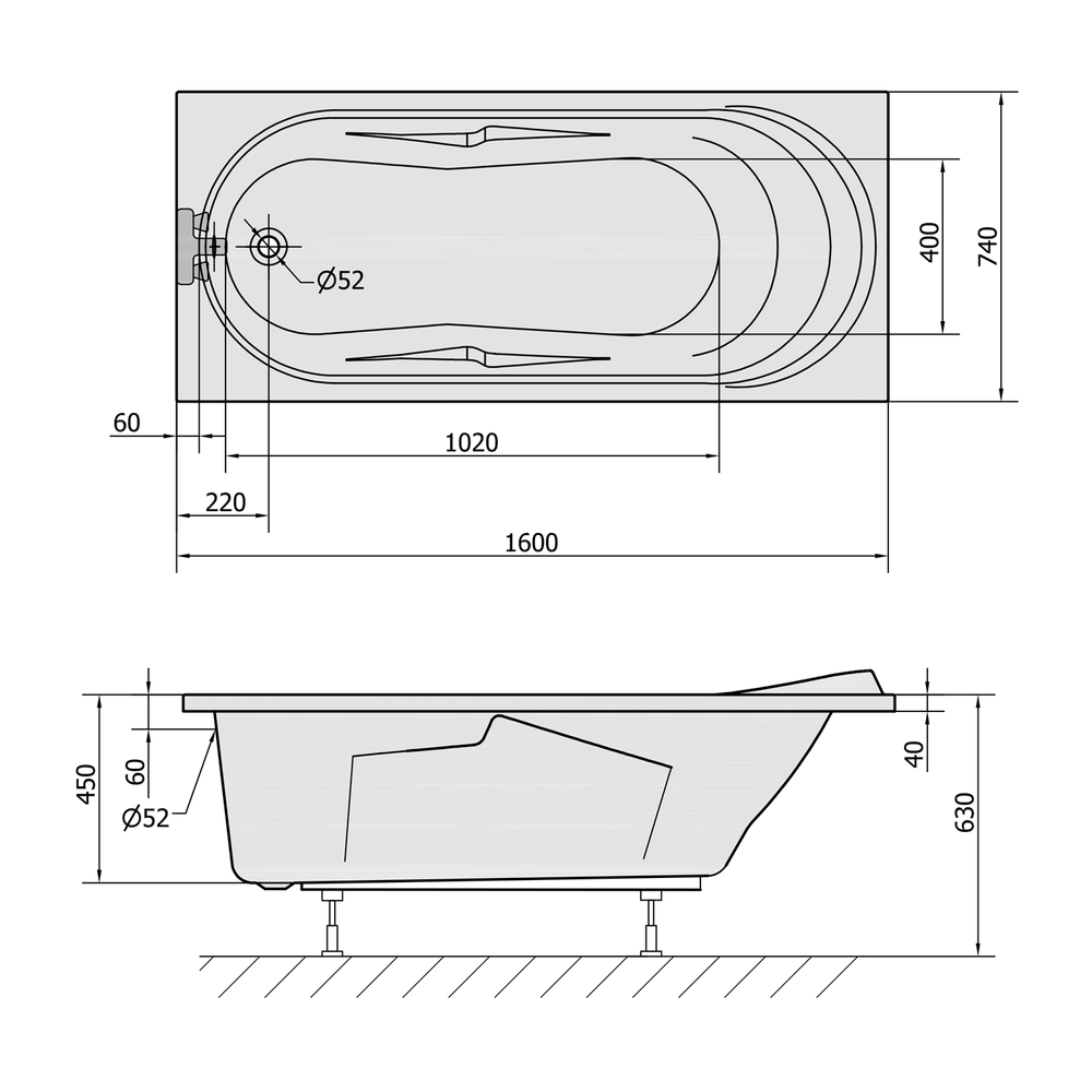 ADRIANA Rechteckwanne 160x74x45cm