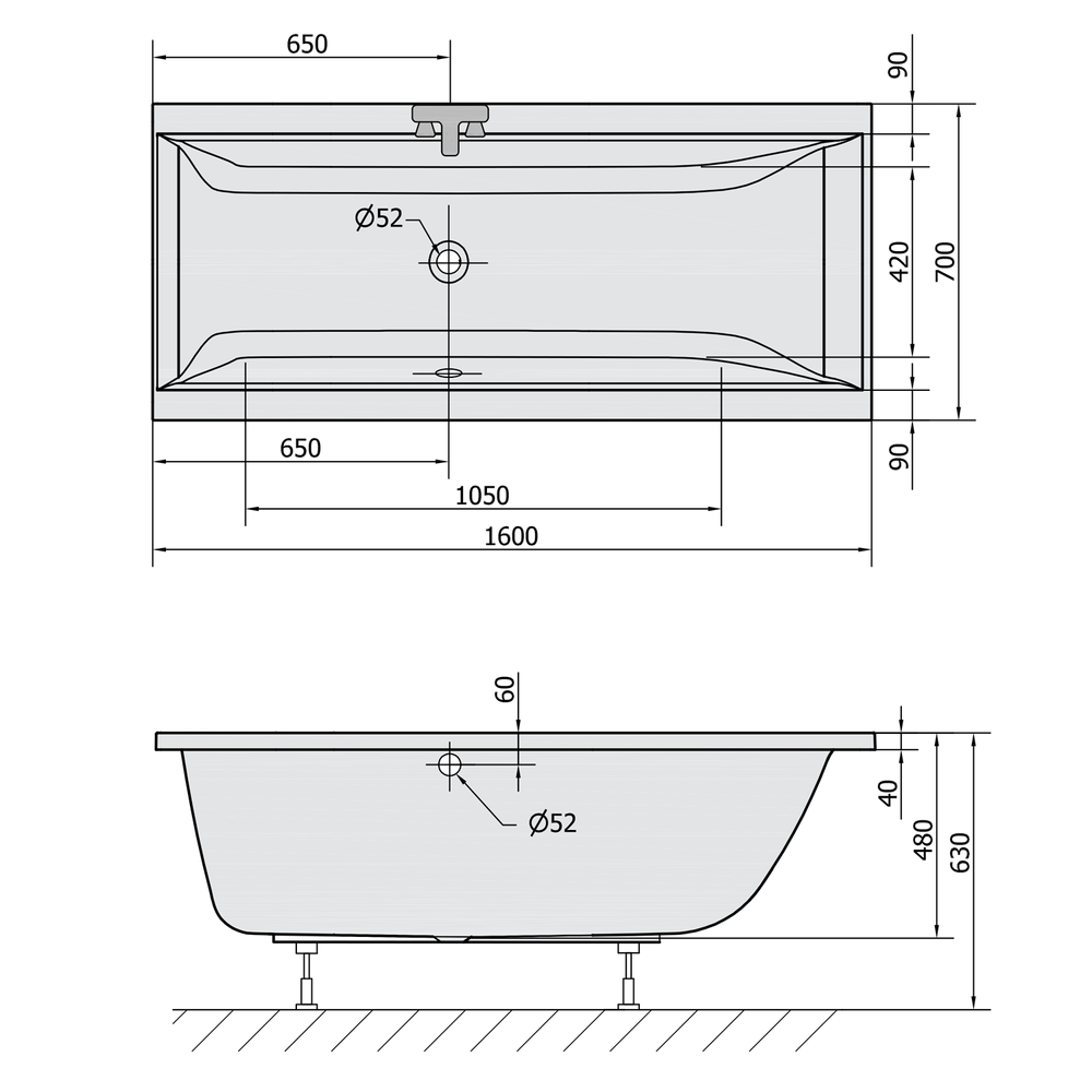 Badewanne Cleo Rechteckwanne 160x70x48cm