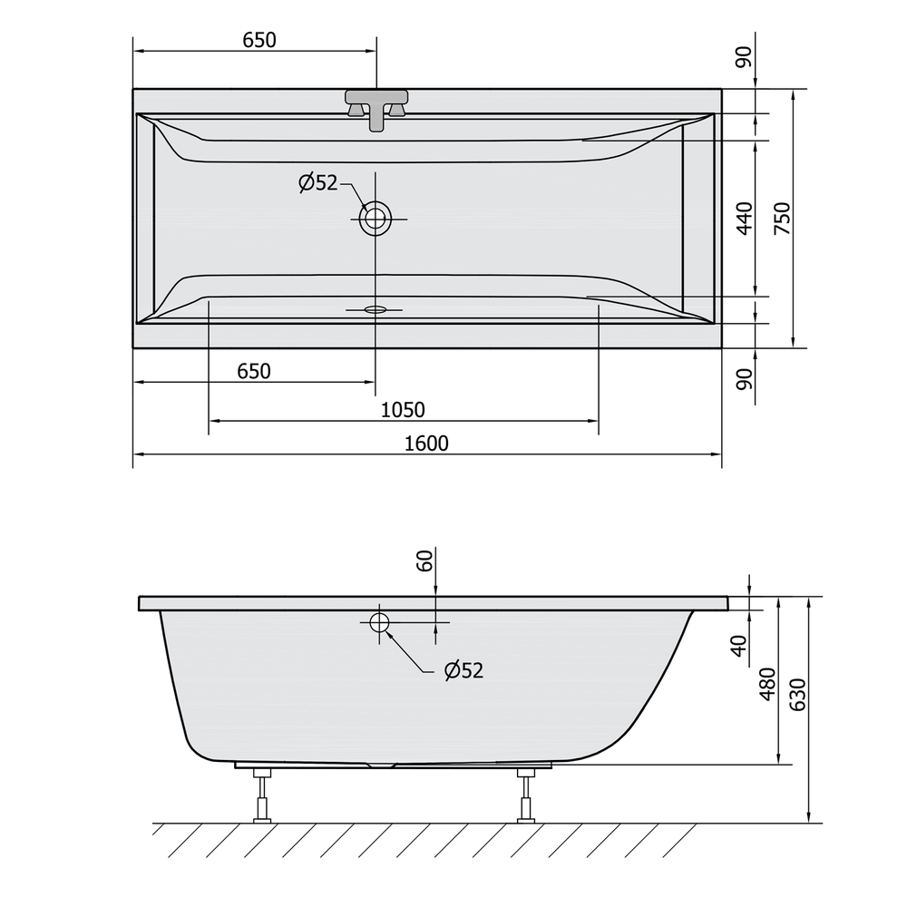 Badewanne Cleo Rechteckwanne 160x75x48cm