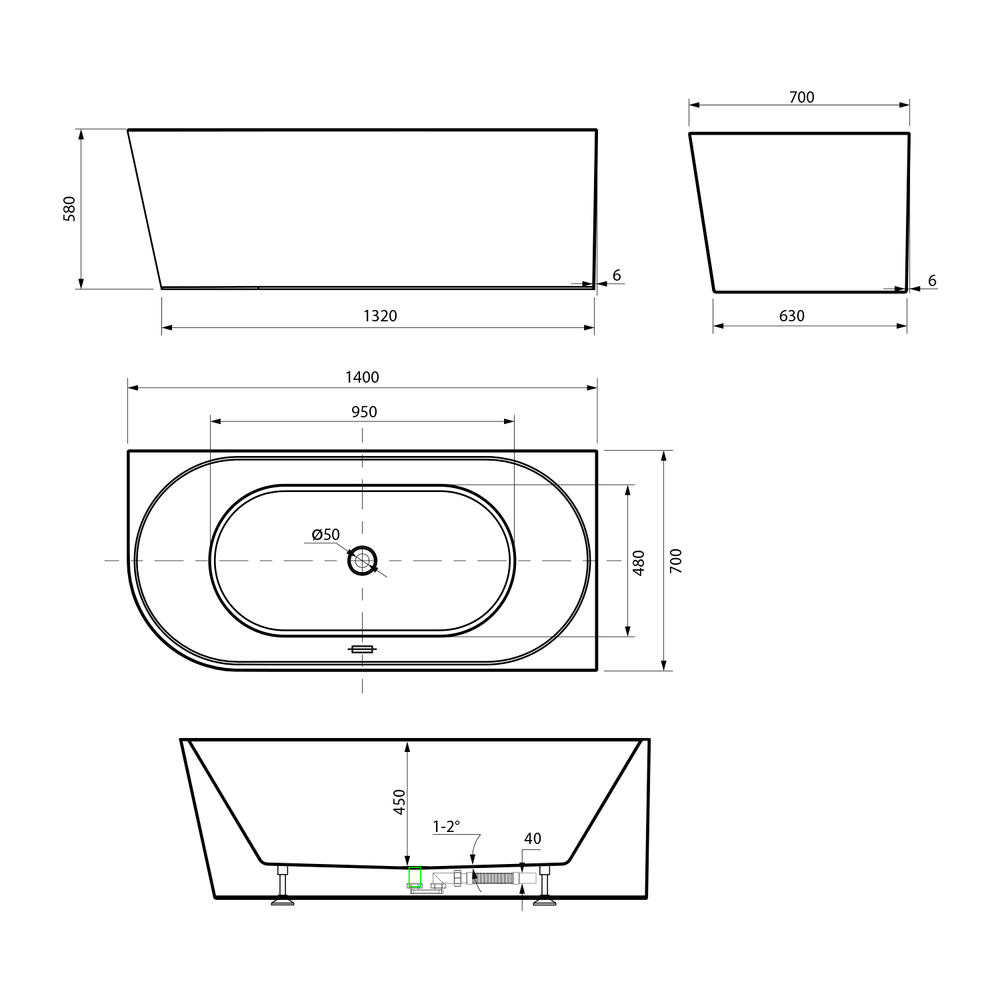 Das Badewannen-Modell wird unter strengster Qualitätskontrolle hergestellt und besteht aus voll durchgefärbten und glasfaserverstärktem Sanitäracryl. Ein unter dem Wannenboden befestigtes Fußgestell ist bereits montiert. Für Ihr persönliches Wohlbefinden in der Wanne sowie eine angenehme Sitzposition sorgt die angenehme Rückenschräge. Der Wasserablauf im Wannen-Modell ist ein sog. Mittelablauf der mittig in der Wanne positioniert ist. Die glatte, porenfreie Oberfläche bietet Nachhaltigkeit in Sachen Pflege und ist dadurch absolut alterungsbeständig.