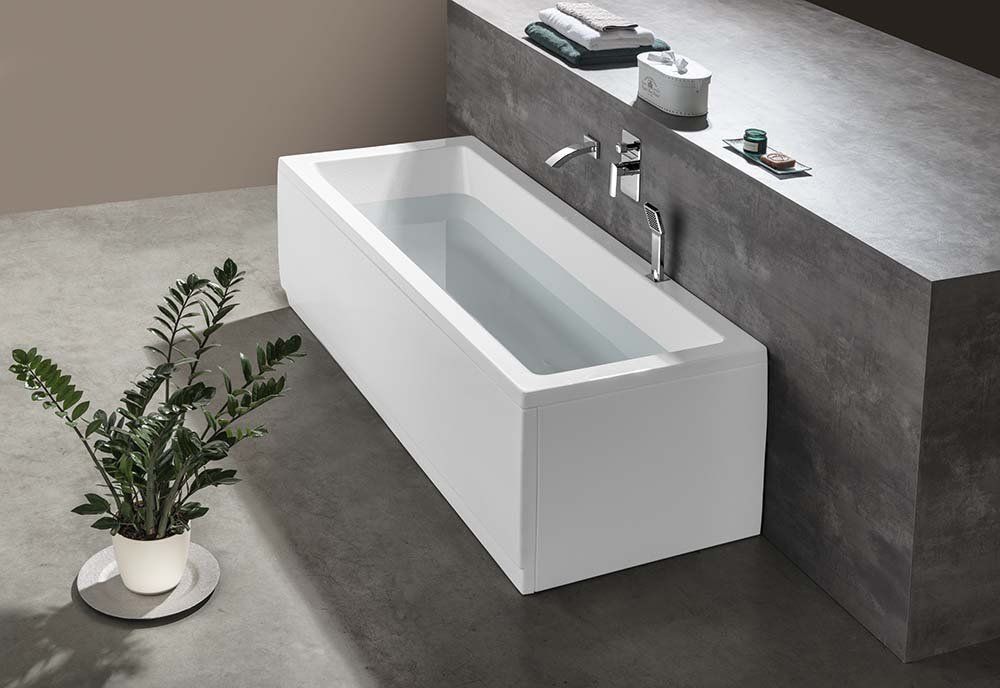 Das Badewannen-Modell wird unter strengster Qualitätskontrolle hergestellt und besteht aus voll durchgefärbten und glasfaserverstärktem Sanitäracryl. Für Ihr persönliches Wohlbefinden in der Wanne sowie eine angenehme Sitzposition sorgt die angenehme Rückenschräge. Der Wasserablauf im Wannen-Modell ist ein sog. Fußablauf. Die glatte, porenfreie Oberfläche bietet Nachhaltigkeit in Sachen Pflege und ist dadurch absolut alterungsbeständig. | |