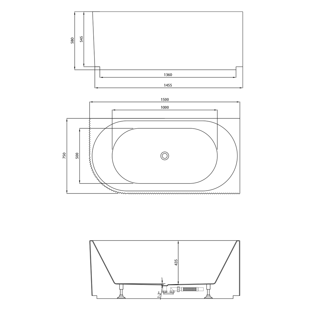Badewanne Tibera rechts 150 x 75
