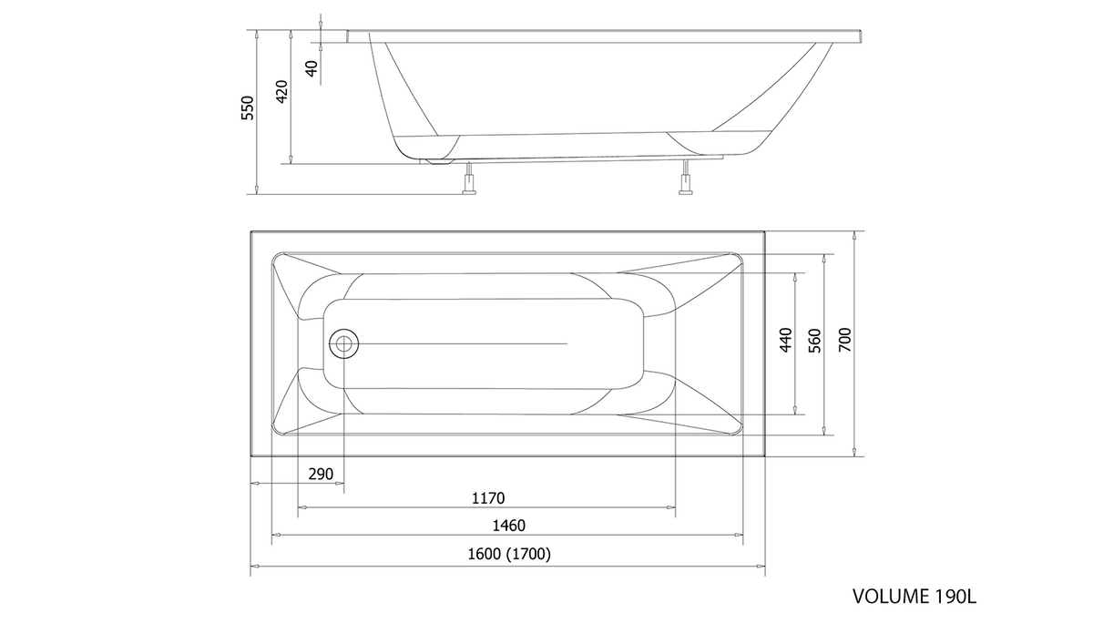 DOUBRAVA Rechteckwanne 170x70x41cm, weiß