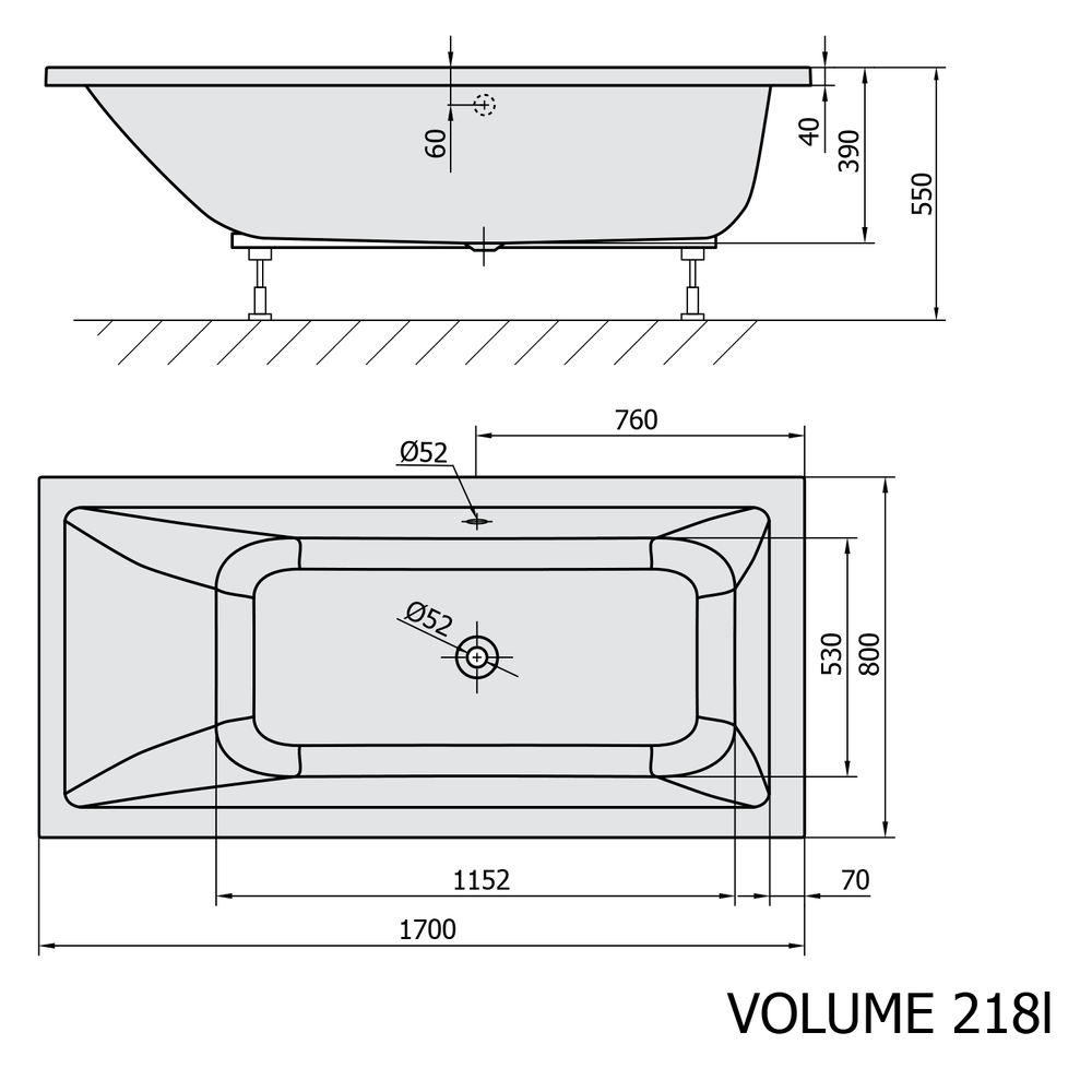 MIMOA Rechteckwanne 170x80x39cm, weiß