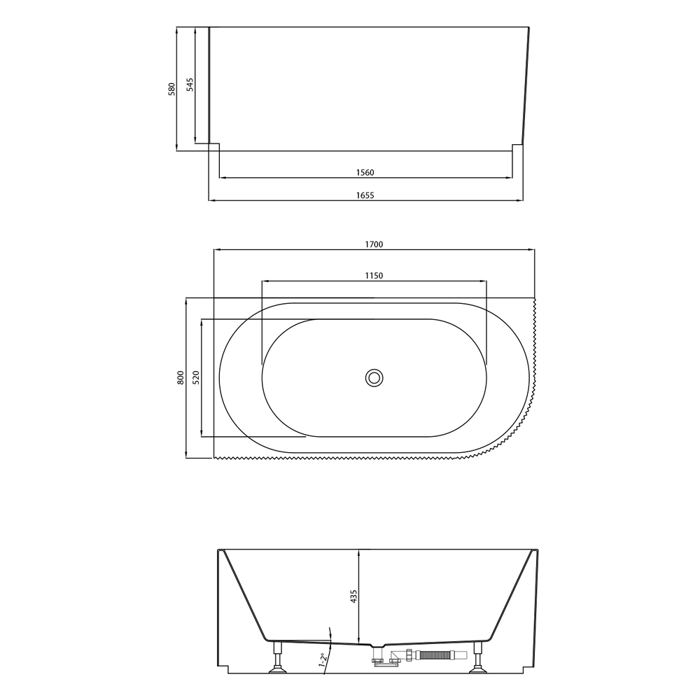 TIBERA STRIP Badewanne 170x80cm links