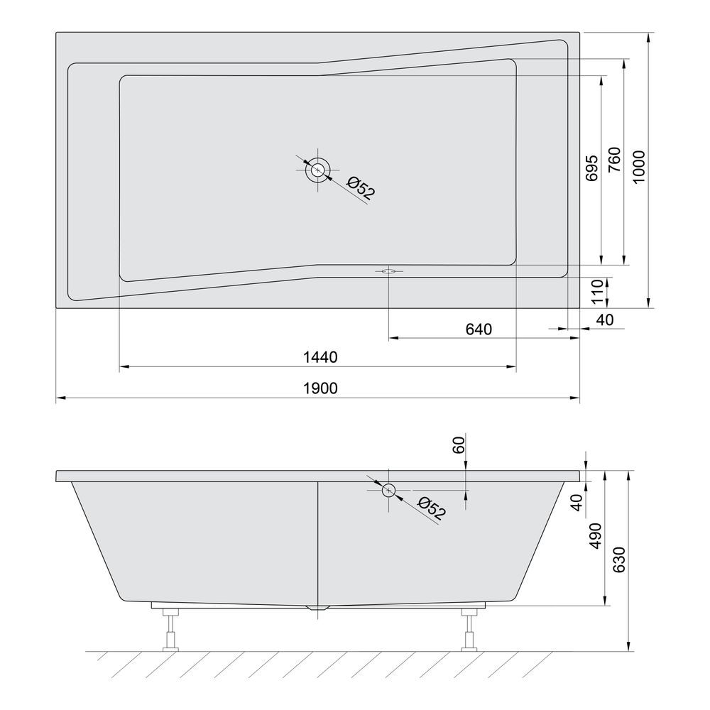 Duo Badewanne Quest 190 x 100 x 49 cm