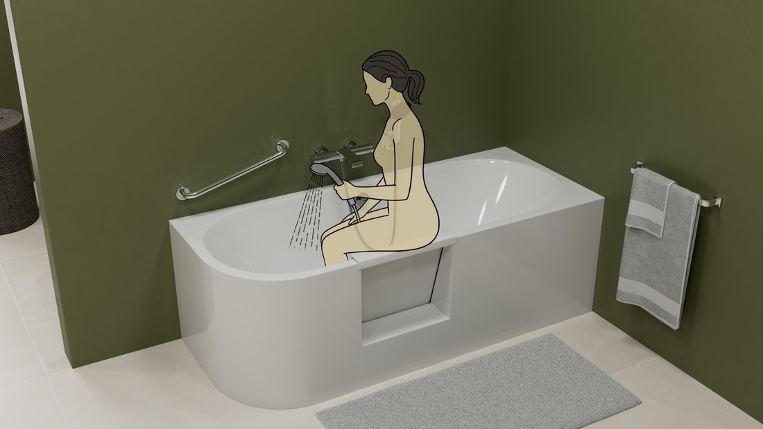Die Badewanne und das vordere äußere Paneel bestehen aus einzigem Material ohne sichtbare Verbindungen.