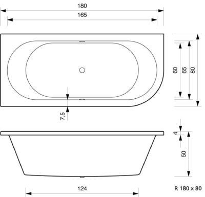 Badewanne Sun Oval 180 x 80 x 50 VR