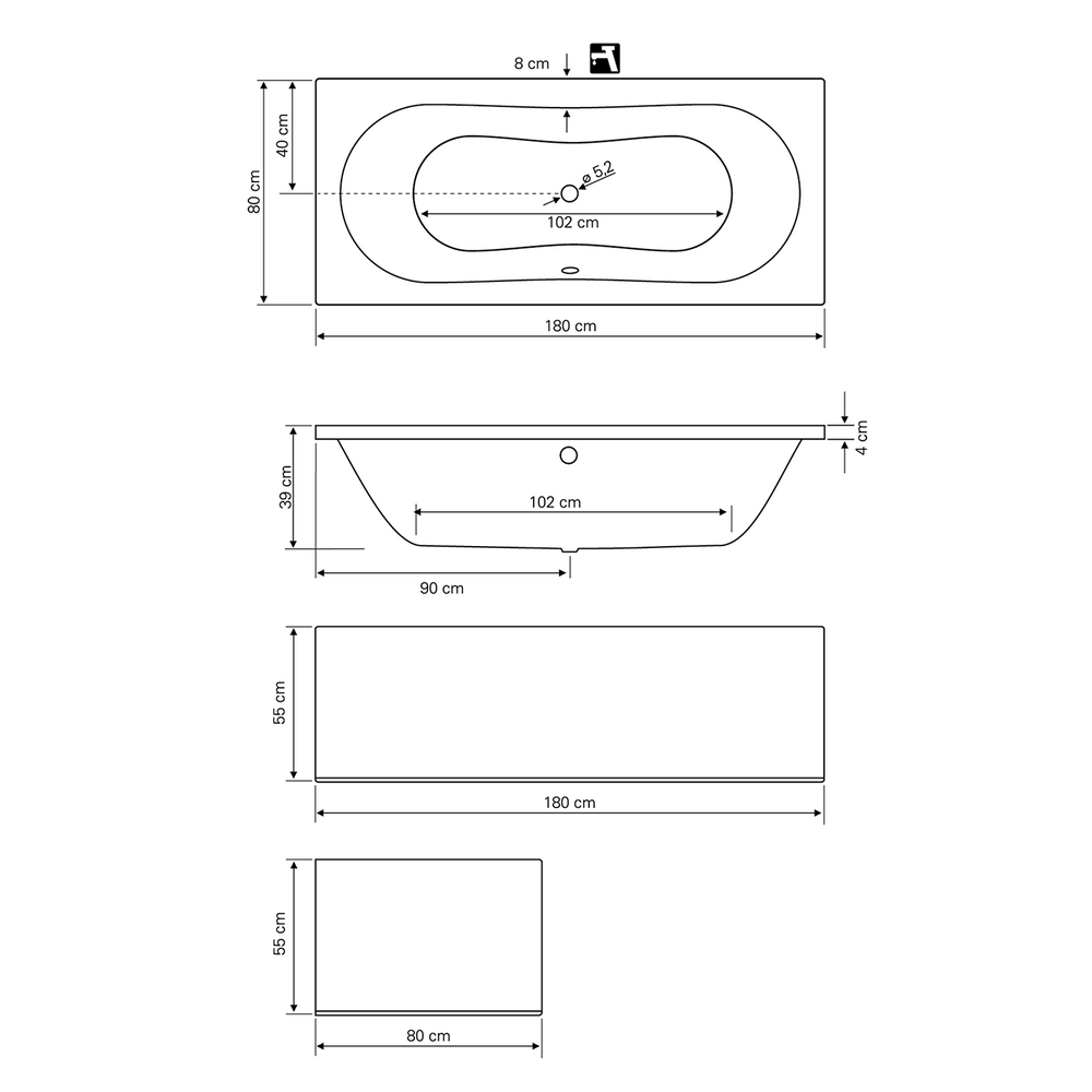 Das Badewannen-Modell wird unter strengster Qualitätskontrolle hergestellt und besteht aus voll durchgefärbten und glasfaserverstärktem Sanitäracryl. Für Ihr persönliches Wohlbefinden in der Wanne sowie eine angenehme Sitzposition sorgt die angenehme Rückenschräge. Der Wasserablauf im Wannen-Modell ist ein sog. Mittelablauf. Die glatte, porenfreie Oberfläche bietet Nachhaltigkeit in Sachen Pflege und ist dadurch absolut alterungsbeständig. | |