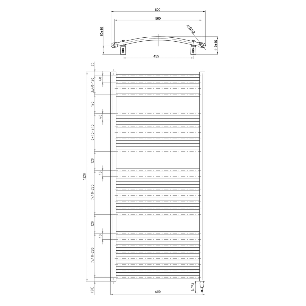 ORBIT-E Elektrischer Badheizkörper, gebogen, 600x1320 mm, 600 W, Weiß