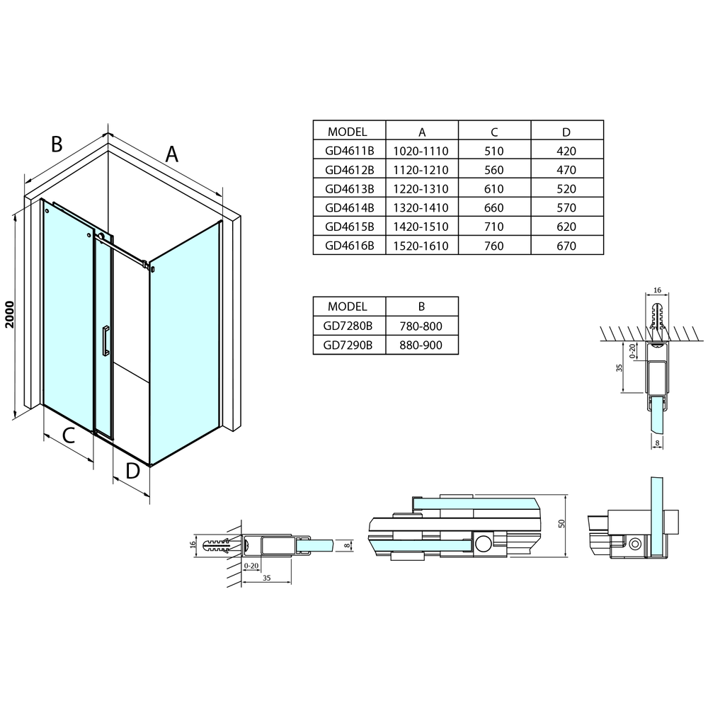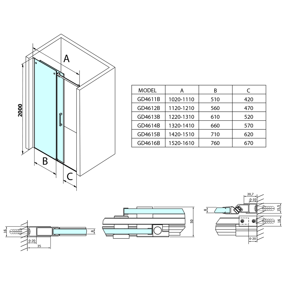 DRAGON BLACK Duschtür 1200mm, Klarglas