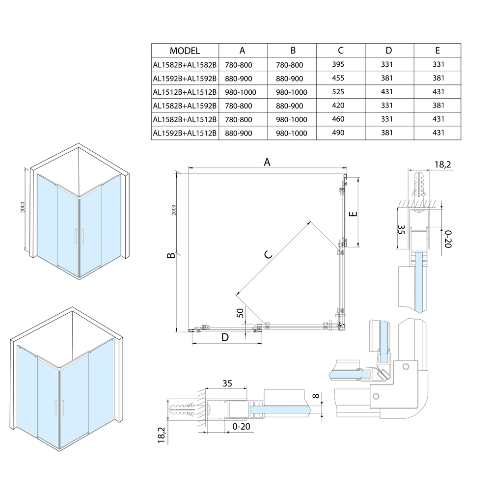 ALTIS BLACK Rechteckige Duschkabine 1000x800 mm, L/R Variante, Eckeinstieg