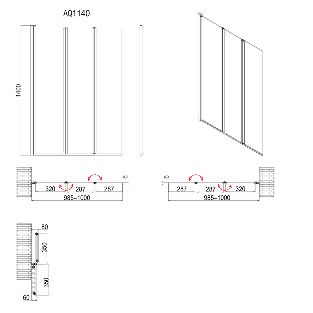VANDA Badewannenfaltwand 1000x1400 mm, Chrom, Mattglas