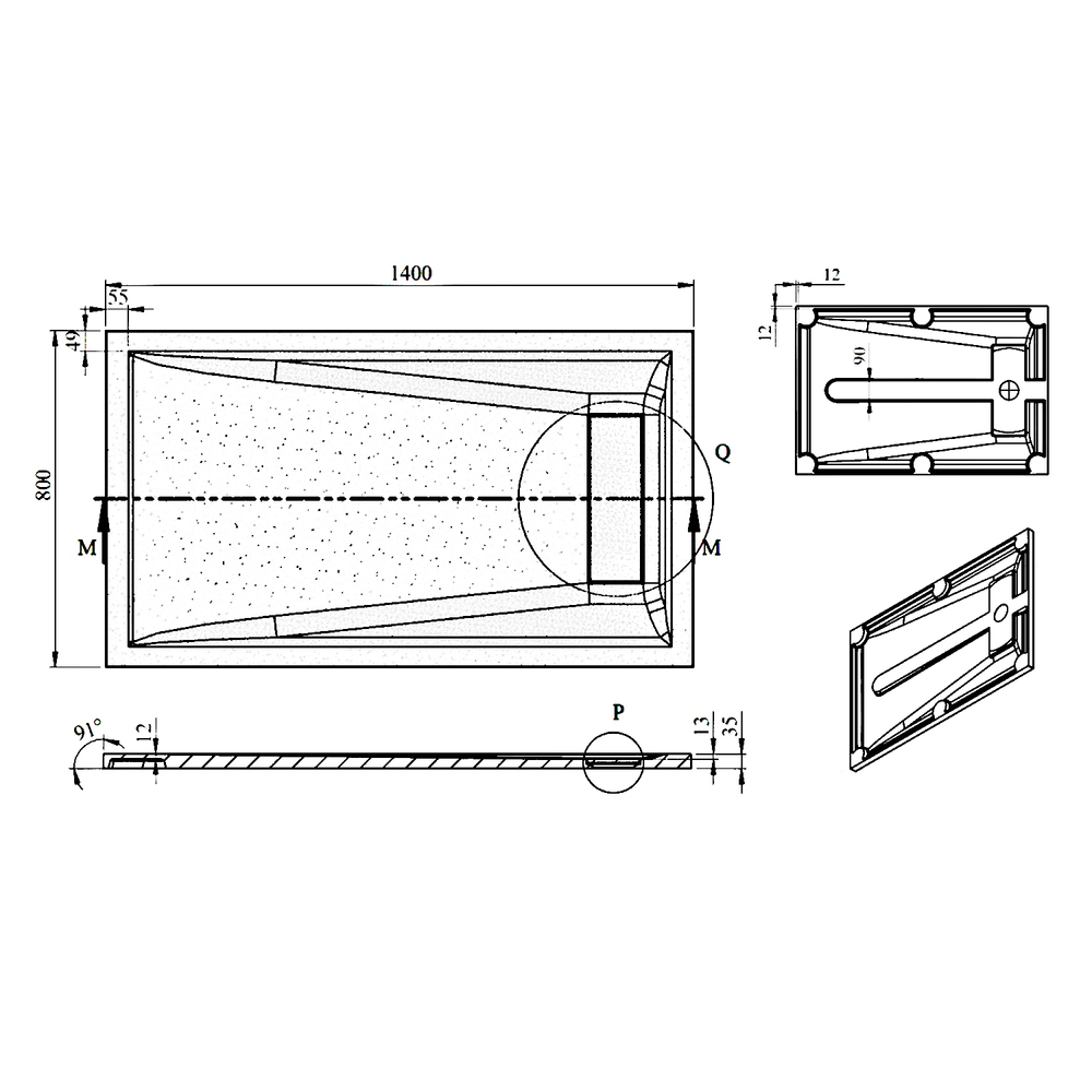 super flache Duschwanne 140 x 80 cm aus