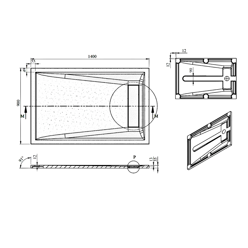 super flache Duschwanne 140 x 90 cm aus