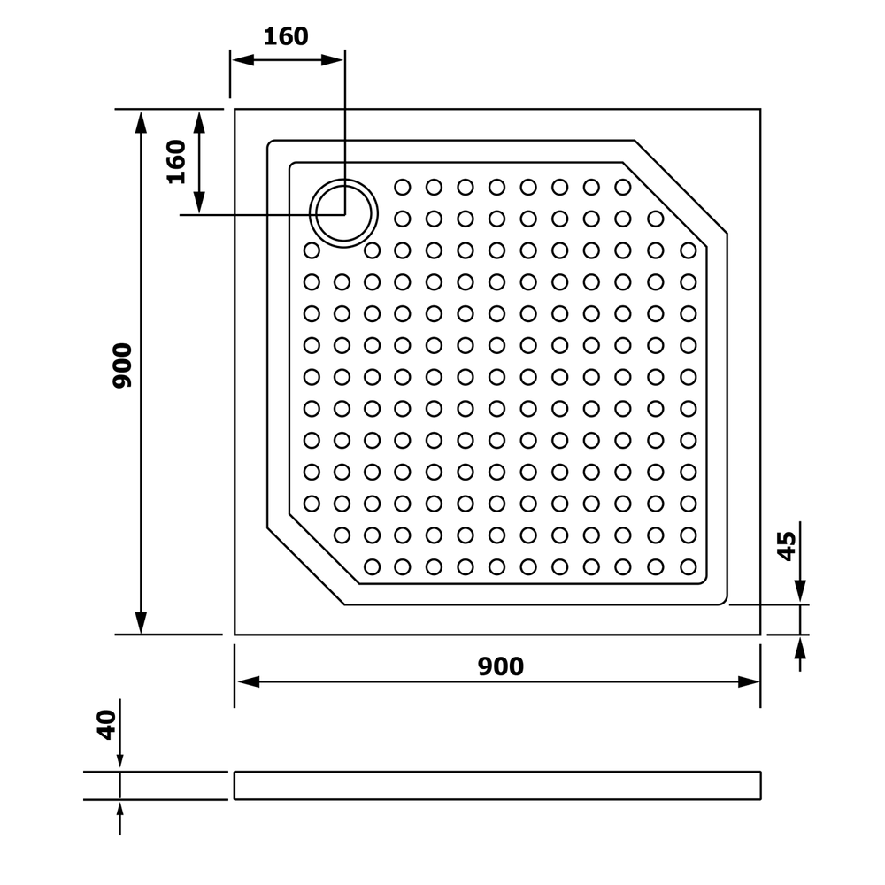 ANETA90 Gussmarmor-Duschwanne, Quadrat 90x90cm