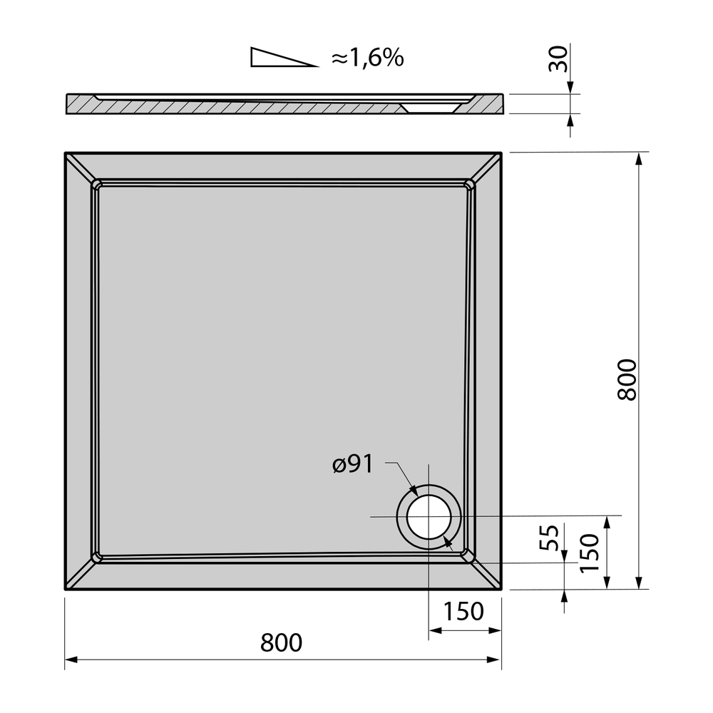 AURA Gussmarmor-Duschwanne, Quadrat 80x80cm, weiss