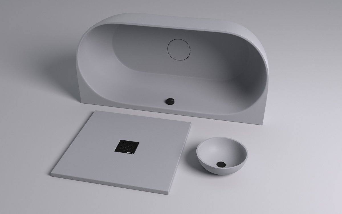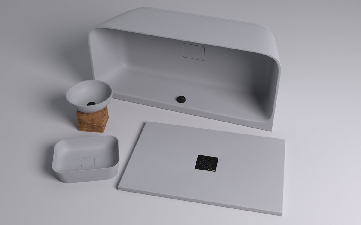 FLEXIA Gussmarmor-Duschwanne 100x100cm, grau matt