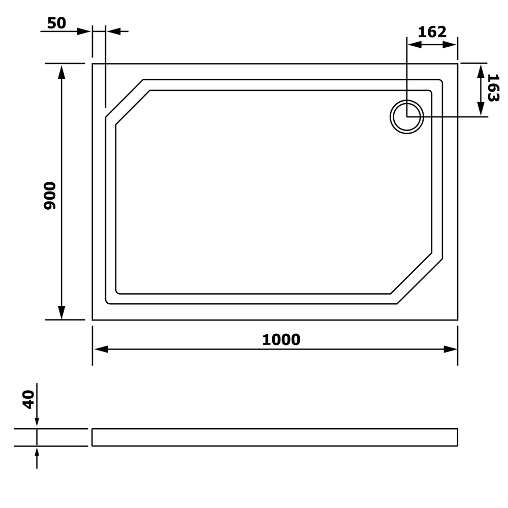 SARA Gussmarmor-Duschwanne, Rechteck 100x90cm, glatt