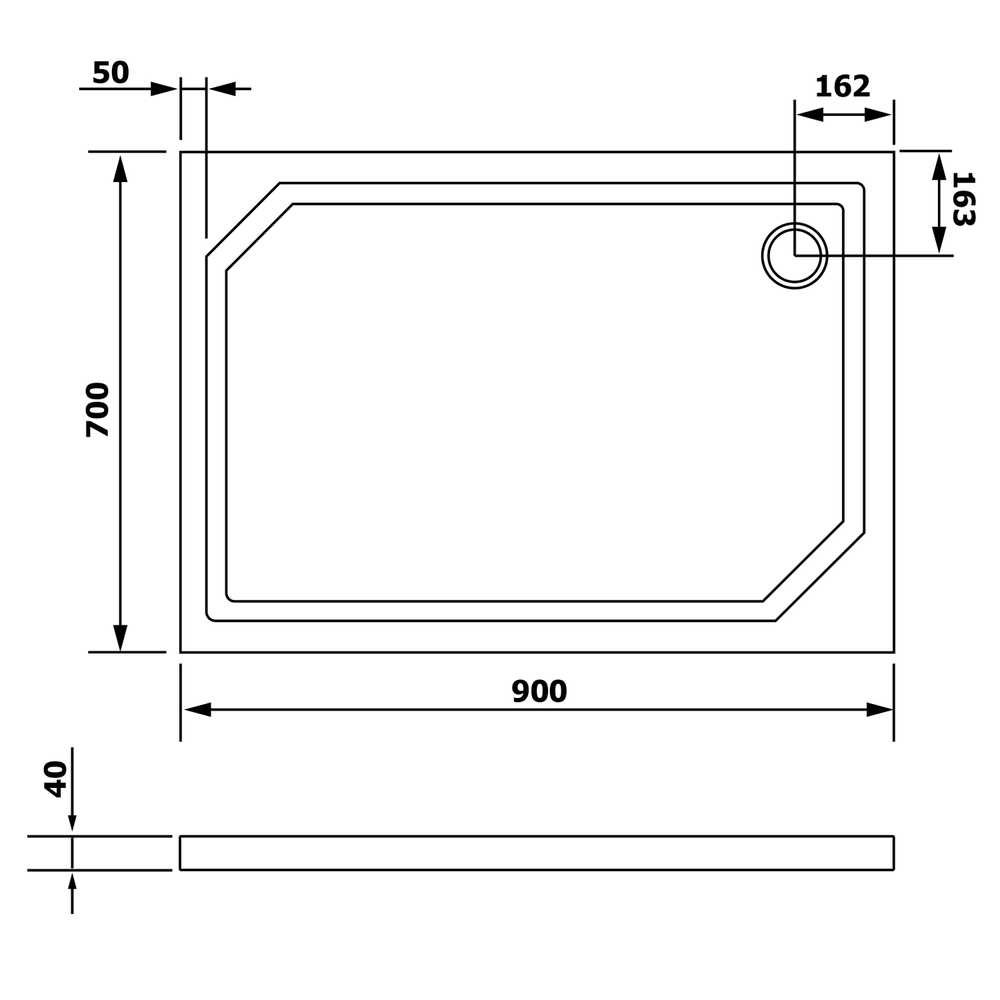 SARA Gussmarmor-Duschwanne, Rechteck 90x70cm, glatt