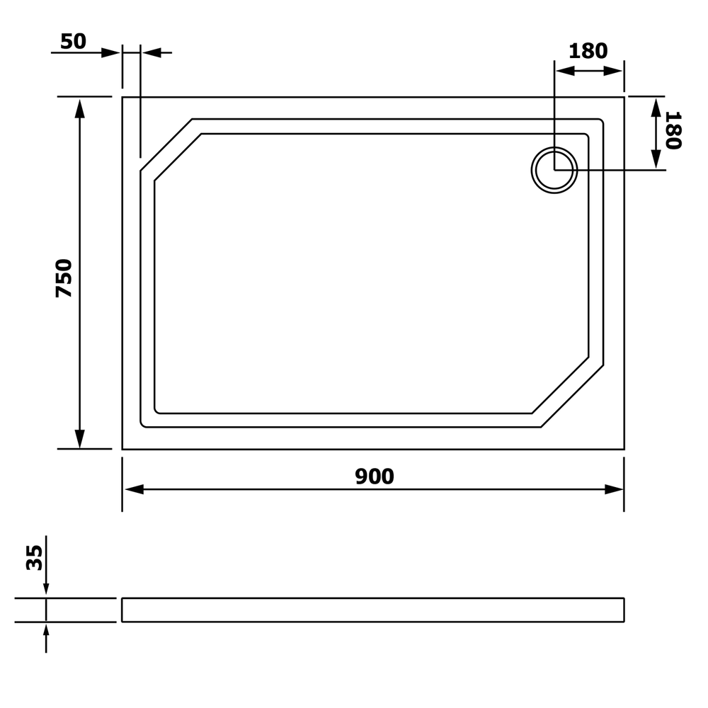 SARA Gussmarmor-Duschwanne, Rechteck 90x75cm, glatt